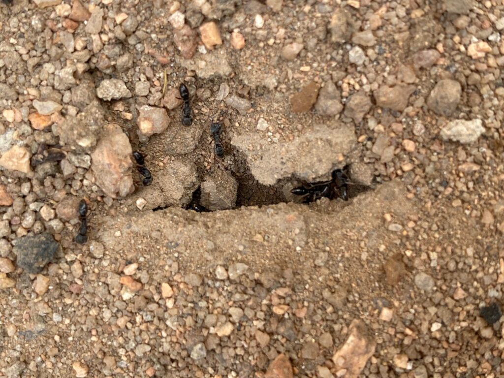 1. Reconhecimento: Formigas batedoras localizam um cupinzeiro;